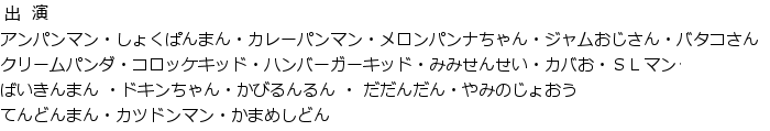 きょうは「黄金の炎」のおまつりです。西部のまちにやってきたクリームパンダたち。おまつりの準備の途中、クリームパンダはコロッケキッドとケンカをして西部のまちを飛び出してしまいました。そのころ、ばいきんまんが黄金の炎を消してしまい、あたりは真っ暗に…!!助けを呼ぶ声を聞いたアンパンマンは、西部のまちへと向かいます。はたして黄金の炎のおまつりはどうなるのでしょうか?そして、2人は仲直りできるのでしょうか?![]() ![]() 1回目 12:00開場/12:30開演 2回目 14:45開場/15:15開演 第1幕 40分/休憩 15分/第2幕 35分 計90分 ※上演時間は目安です。変更になる場合がございます。 会 場 :ロームシアター京都メインホール チケット:¥3,600(全席指定・税込) ※3歳以上有料。2歳以下は保護者1名につき1名ひざ上鑑賞可。但し、お席が必要なお子様は有料。 主催:ページ・ワン 協力:読売テレビ 制作:ムービック・プロモートサービス チケット5/23一般発売 ![]() ![]() https://t.pia.jp/ セブン-イレブン(直接購入可能) (Pコード:539-823) ![]() http://eplus.jp ファミリーマート店内端末「Famiポート」(直接購入可能) ![]() http://l-tike.com/ ※PC/スマートフォン共通 ローソン、ミニストップ店内端末「Loppi」(直接購入可能) (Lコード:53197) ![]() ロームシアター京都チケットカウンター