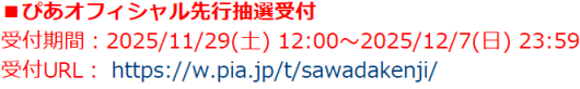 16:00開場/17:00開演 会 場 :フェスティバルホール 料 金 :全席指定席¥8,800、バルコニーBOX席¥8,800 (税込) ※未就学児童の入場不可 ![]() チケット12/27一般発売! ※各プレイガイド 発売開始日の午前10時からの受付になります。